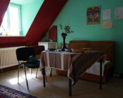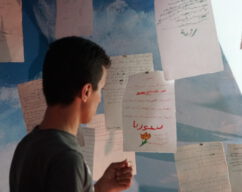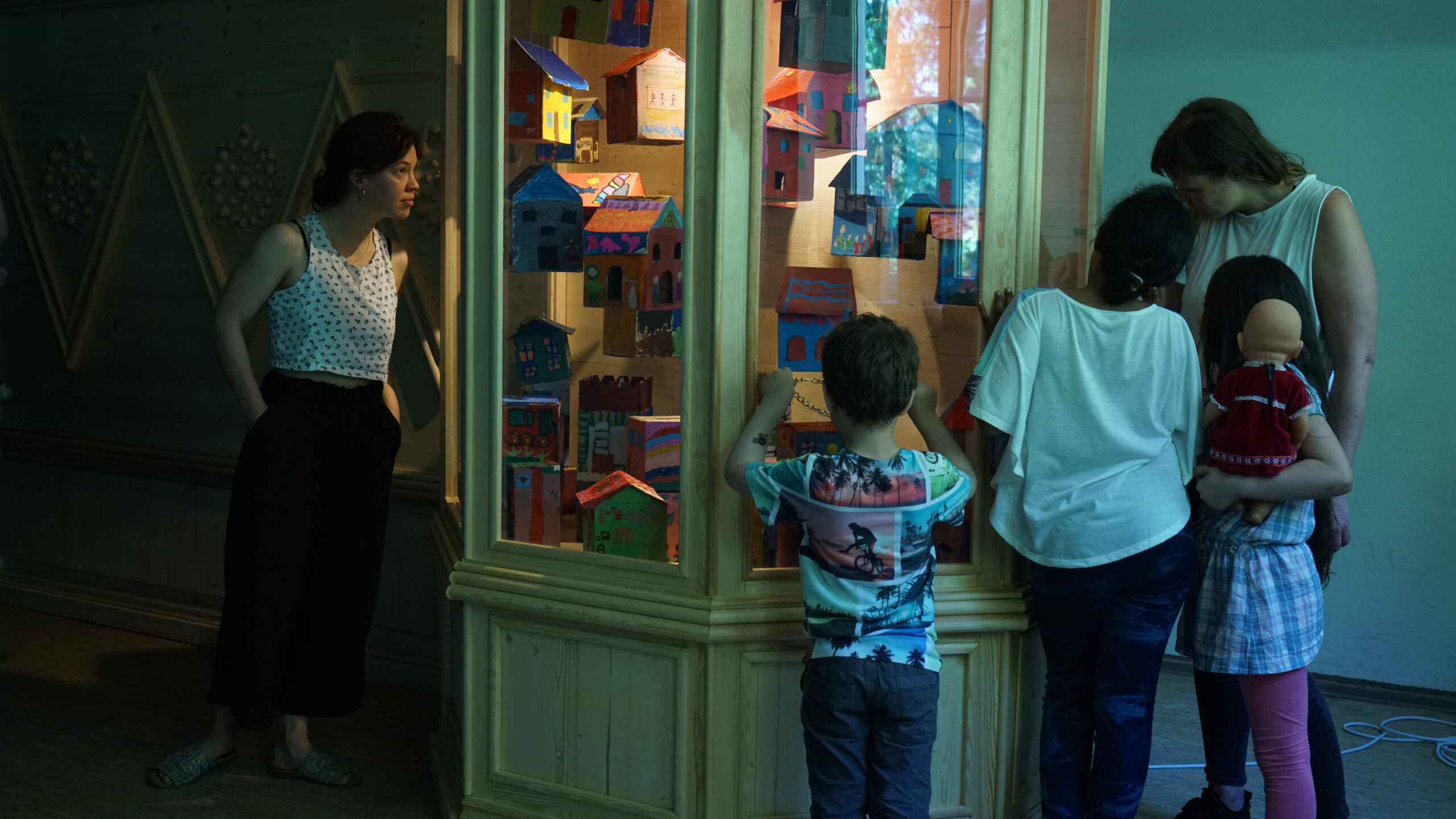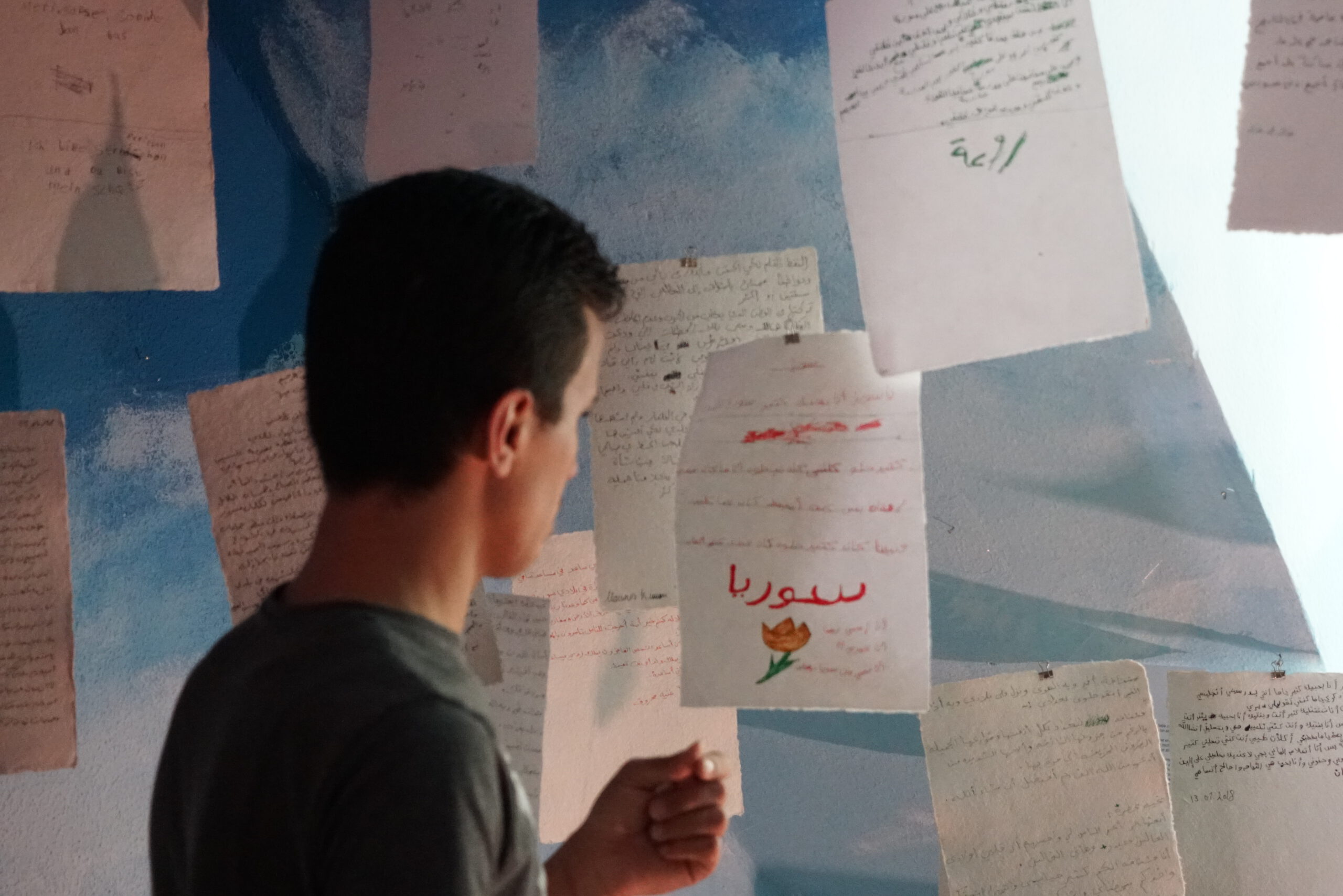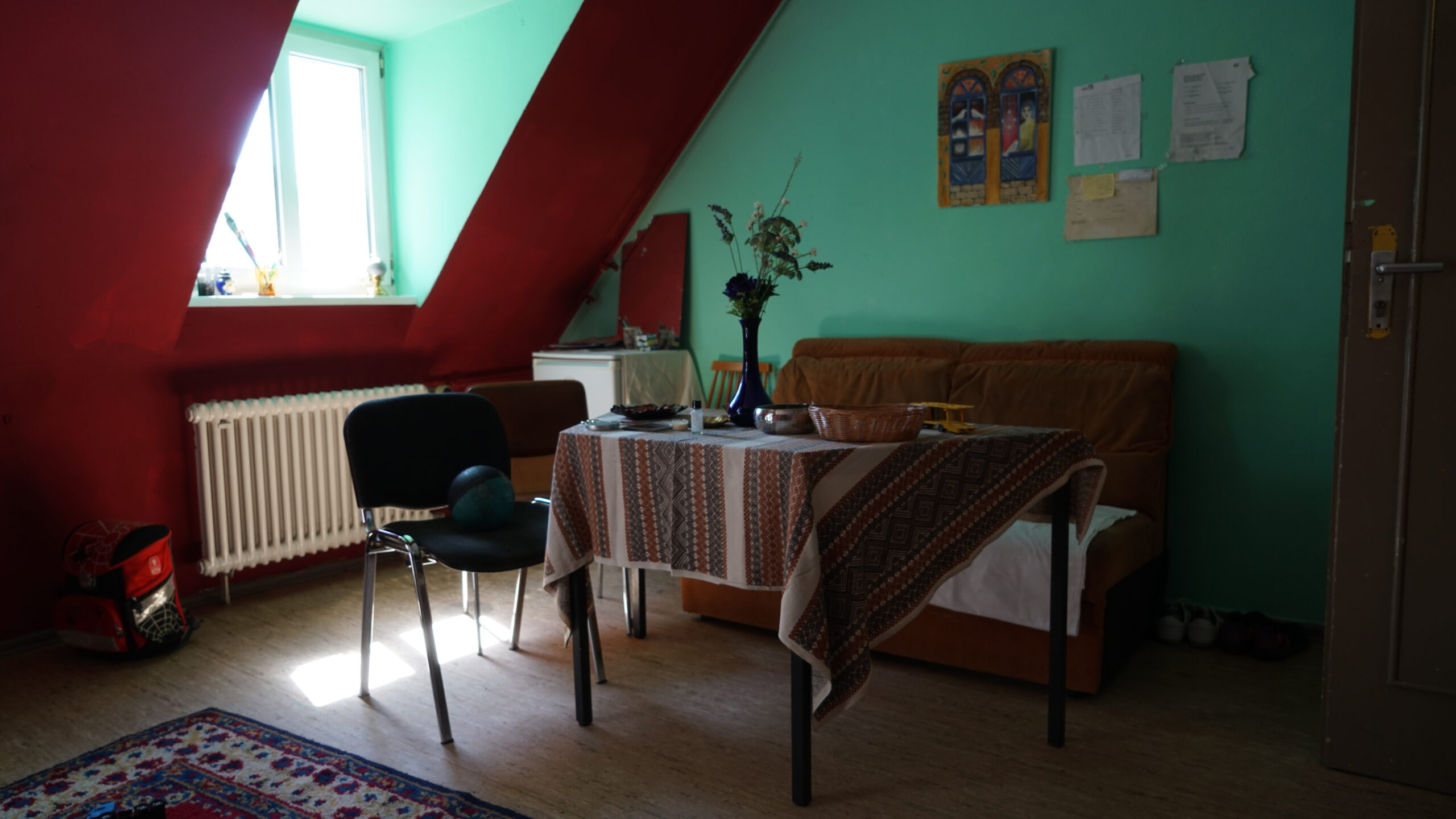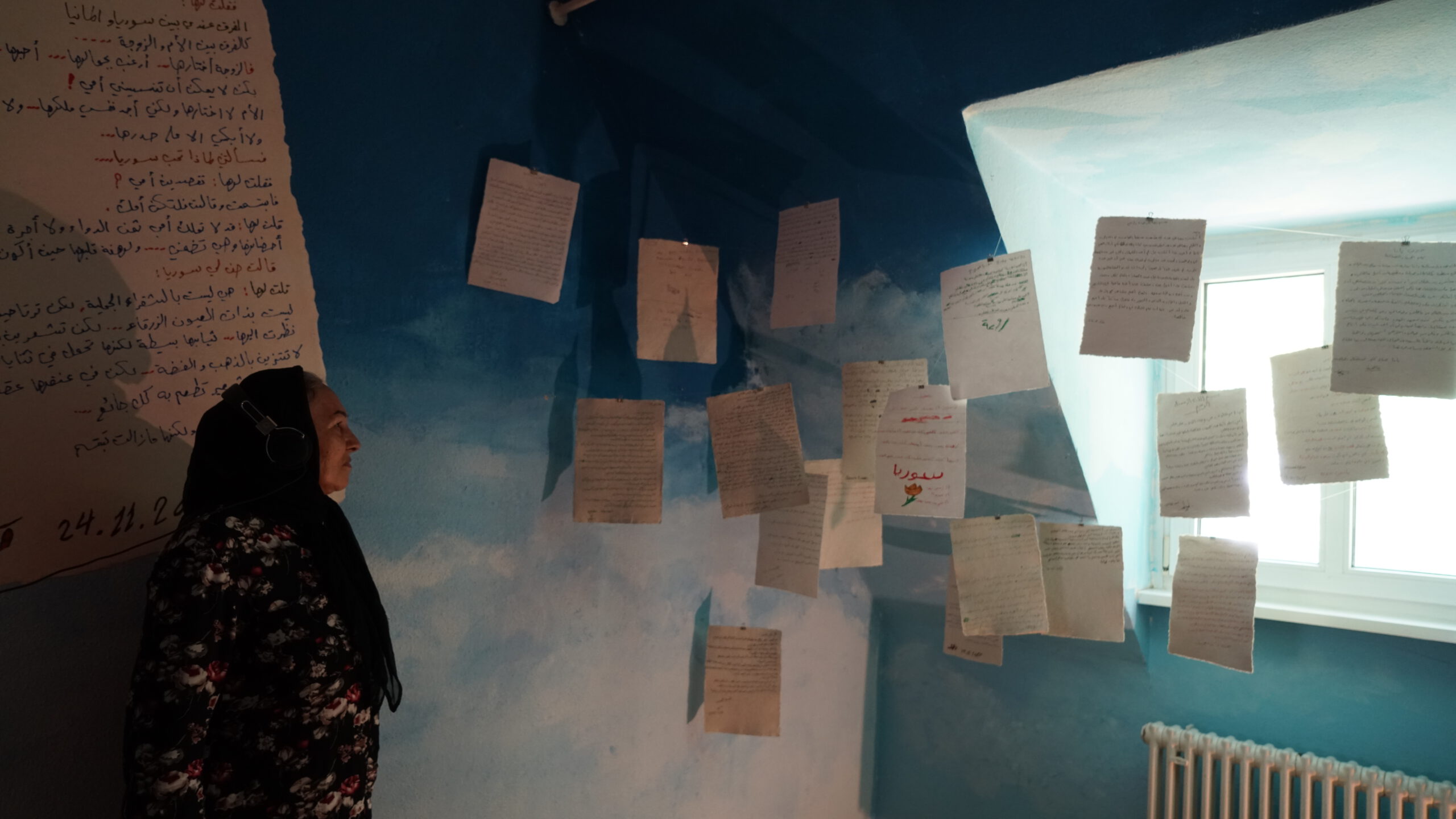 Raumgestaltung in Zusammenarbeit mit Künstler*innen: Nidal Jalouk, Fatima Abdo, Raed Alhameed, Mohammad Rabee Alskif, Kifan AlkarJousli, Dani Hasroni, Walid Fraije, Oula Soleman und Anastasia Usatova sowie mit Bewohner*innen des Refugiums.