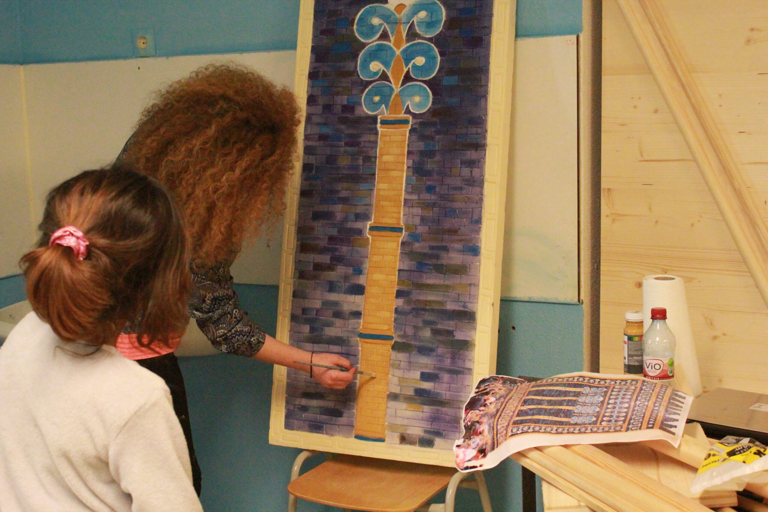 Vorbereitend haben die Teilnehmer*innen das Pergamon Museum besucht, welches viele Kunstschätze aus den Herkunftsländern der Bewohner*innen zeigt. Durch ihre Herkunft und Historie haben viele der Menschen mit Fluchterfahrung eine tiefere Verbindung zu diversen dort ausgestellten Kulturgütern.